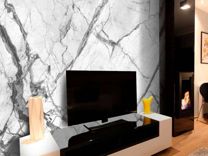 В интерьере комнат можно сделать акцентную стену, оклеив её гибким мрамором. Особый шик: нанести на гибкий камень фреску с помощью УФ-печати.