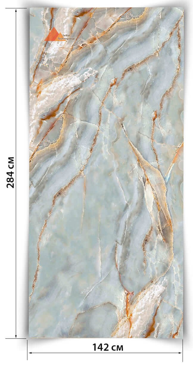 Гибкий мрамор — современный отделочный материал, на 90% состоит из фракции натурального мрамора, закрепленного на гибком основании. Гибкий мрамор «Голубой Оникс» (серия CL). Рисунок данной серии мрамора состоит из четырех листов. Они клеятся в определенном порядке и образуют на поверхности закономерный рисунок. 1-й и 4-й листы также стыкуются между собой.
